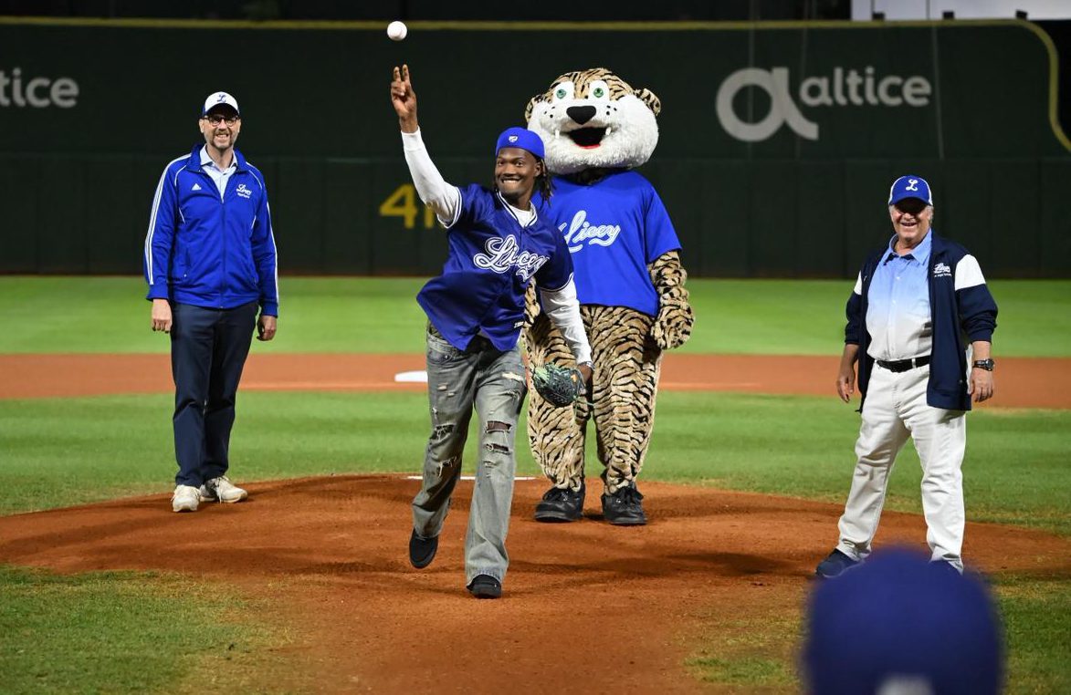 SANTO DOMINGO (Licey.com).– El relevista dominicano Abner Uribe tuvo a su cargo el lanzamiento ceremonial de la primera bola, previo al encuentro entre los Leones del Escogido y Tigres del Licey celebrado este martes en el estadio Quisqueya Juan Marichal.