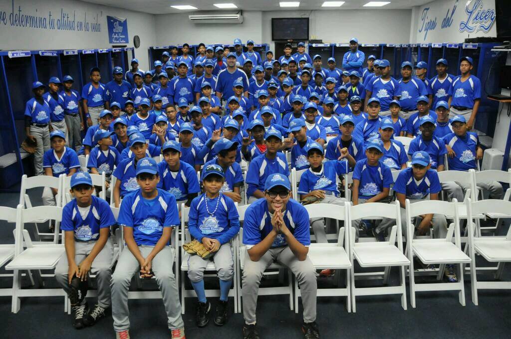 En el Campamento de Verano de Béisbol de los Tigres del Licey participan unos 350 niños y niñas de 5 a 16 años de edad. A la charla con acta sólo se incluyó quienes tienen once y más.