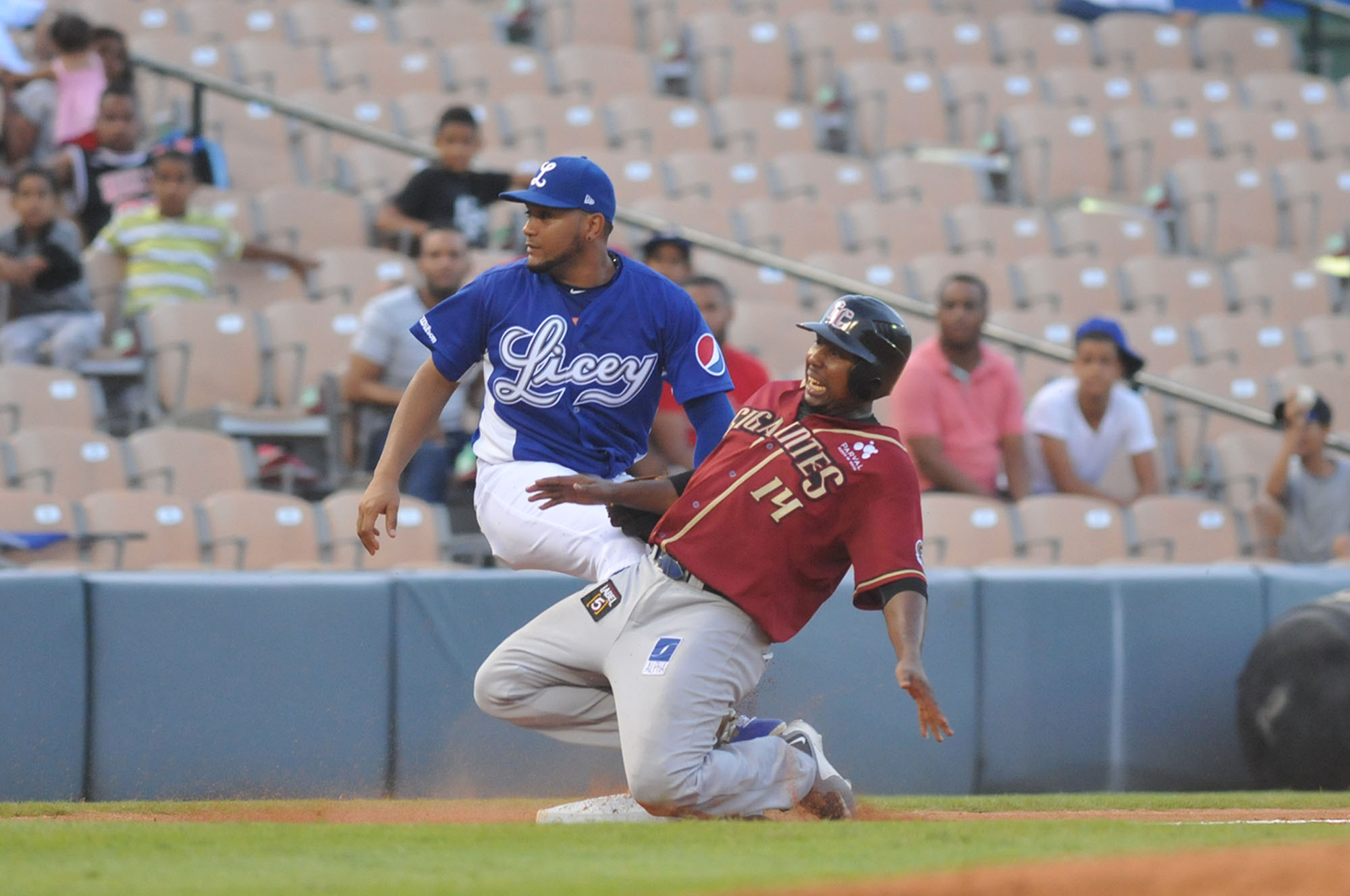 Por Licey; Anderson Hernández (.333) de 3-1, con doble; Sergio Alcántara (1.000) de 1-1; José Marmolejos (.333) de 3-1; Ordomar Valdez (1.000) de 1-1; Rymer Liriano (.200) de 2-1y Andrew Aplin (.167) de 2-1