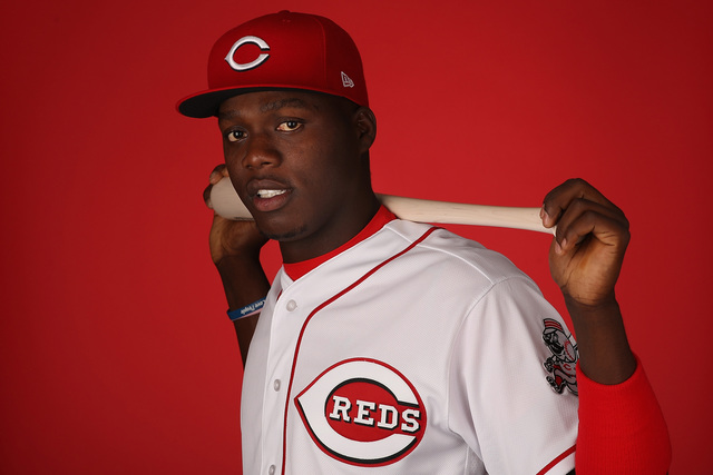 GOODYEAR, AZ – FEBRUARY 18: Aristides Aquino #66 of the Cincinnati Reds poses for a portait during a MLB photo day at Goodyear Ballpark on February 18, 2017 in Goodyear, Arizona. (Photo by Christian Petersen/Getty Images)