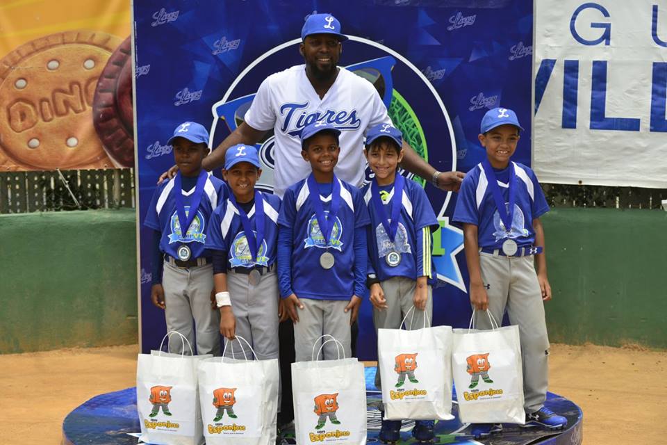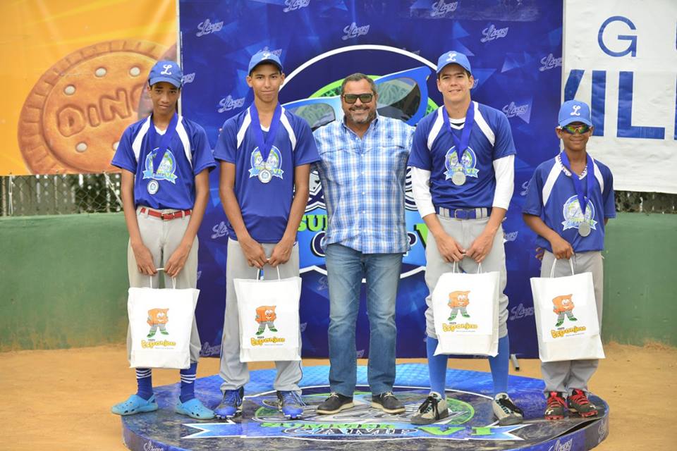 Fernando José Ravelo, de Operaciones de Béisbol y los coaches José Offerman y Silvestre Campusano, acompañaron a Jaime Alsina, Vladimir Guerrero y Junior Noboa en la premiación de los más destacados, los que recibieron medallas y productos de los patrocinadores.