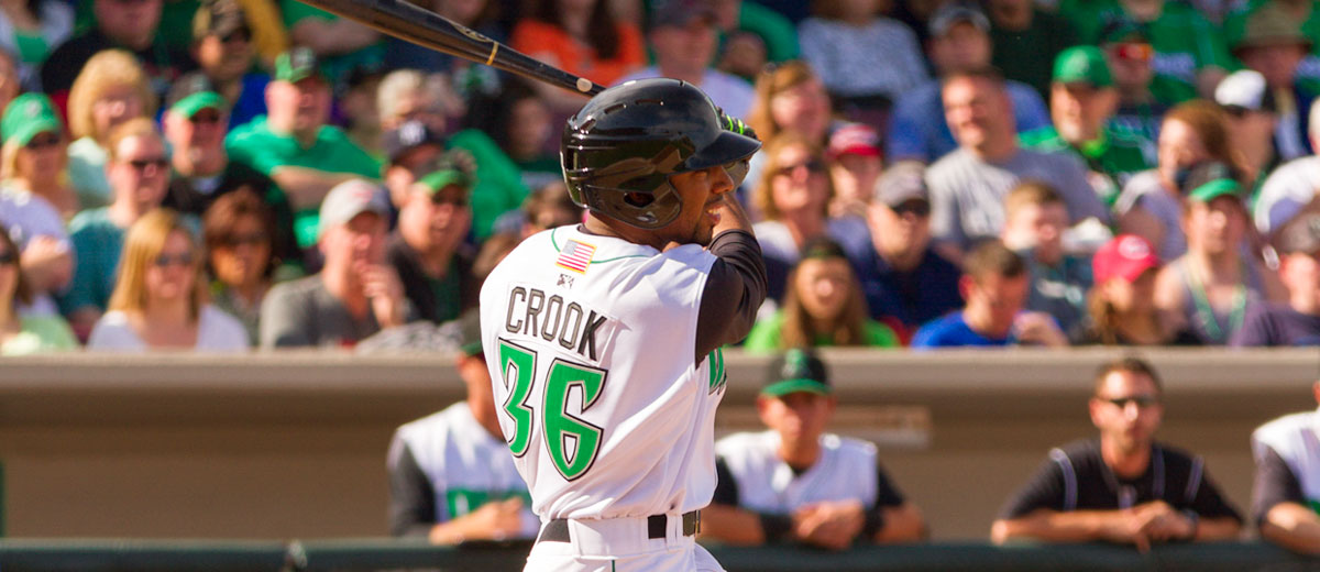 Como jardinero central y tercero en alineación, Crook bateó su segundo cuadrangular en cuatro visitas al plato, sexta carrera remolcada, sexta anotada, pero en la causa perdida de Dayton (Cincinnati), que fue superado 11-6 en Lansing (Toronto) en la Liga del Medio Oeste, Clase A.