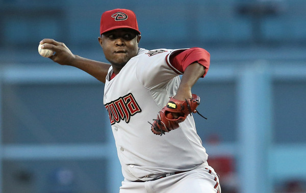 Rubby De La Rosa #12 of the Arizona Diamondbacks throws a pitch against the Los Angeles Dodgers at Dodger Stadium on May 1, 2015 in Los Angeles, California.(April 30, 2015 – Source: Stephen Dunn/Getty Images North America)