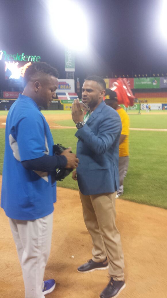 Juan Carlos Hidalgo entrevista a Erick Aybar en el Estadio Cibao