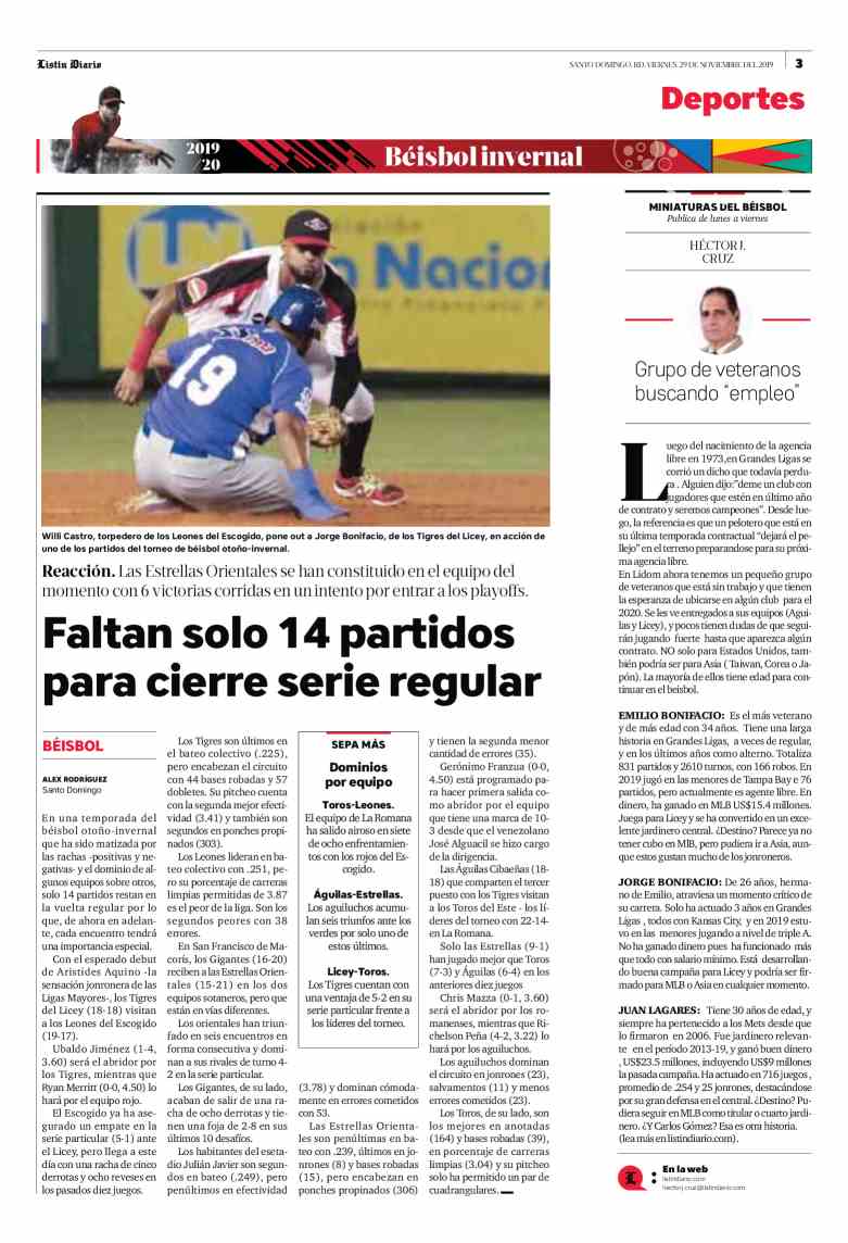 SANTO DOMINGO,-En una temporada del béisbol otoño-invernal que ha sido matizada por las rachas -positivas y negativas- y el dominio de algunos equipos sobre otros, solo 14 partidos restan en la vuelta regular por lo que, de ahora en adelante, cada encuentro tendrá una importancia especial.