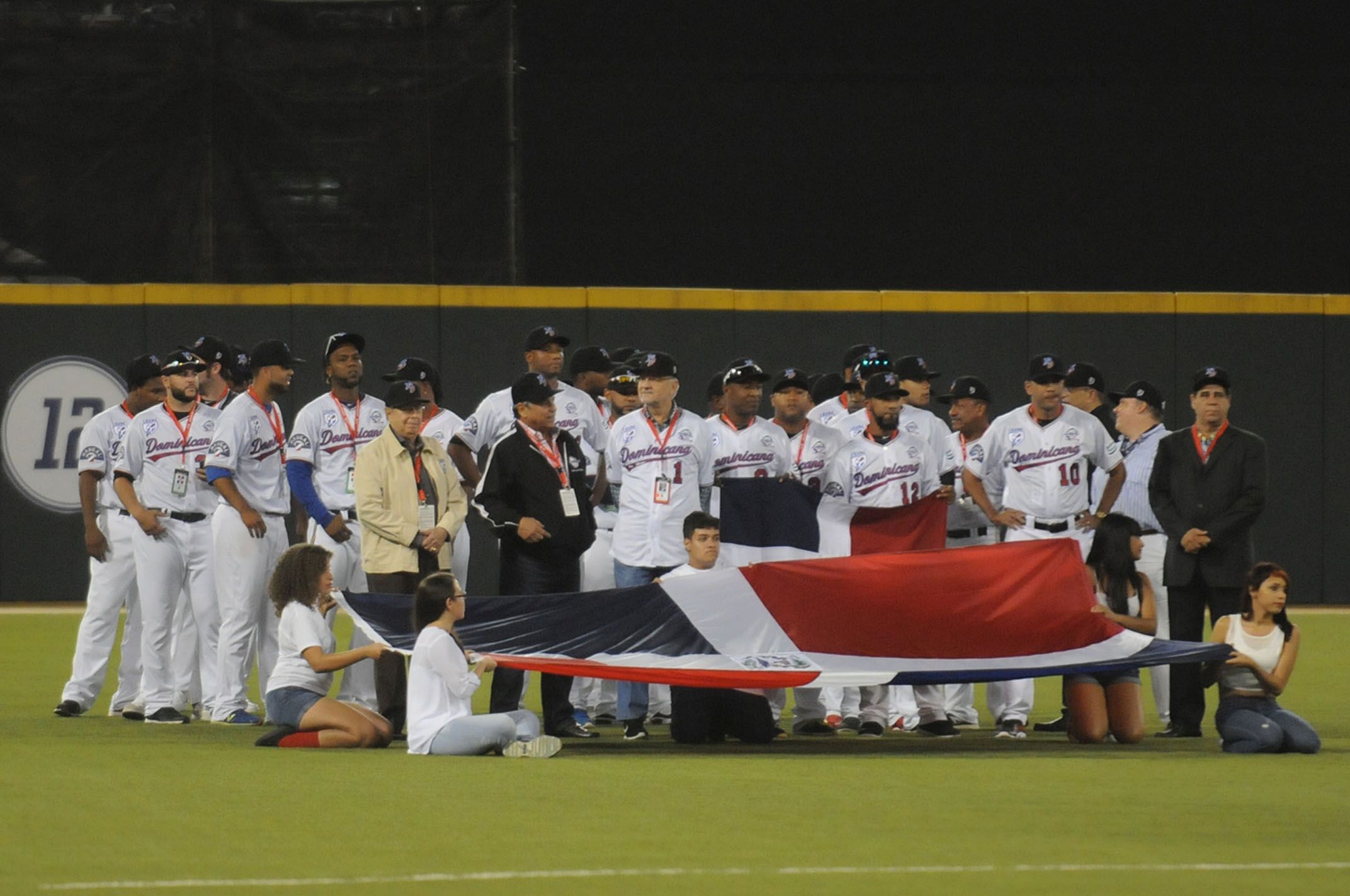 Tras el baile y la presentación de los equipos participantes, el exreceptor puertorriqueño Iván Rodríguez hizo el lanzamiento de honor, pero en vez desde el montículo de los lanzadores, lo hizo desde el área de la receptoría hacia la segunda base.