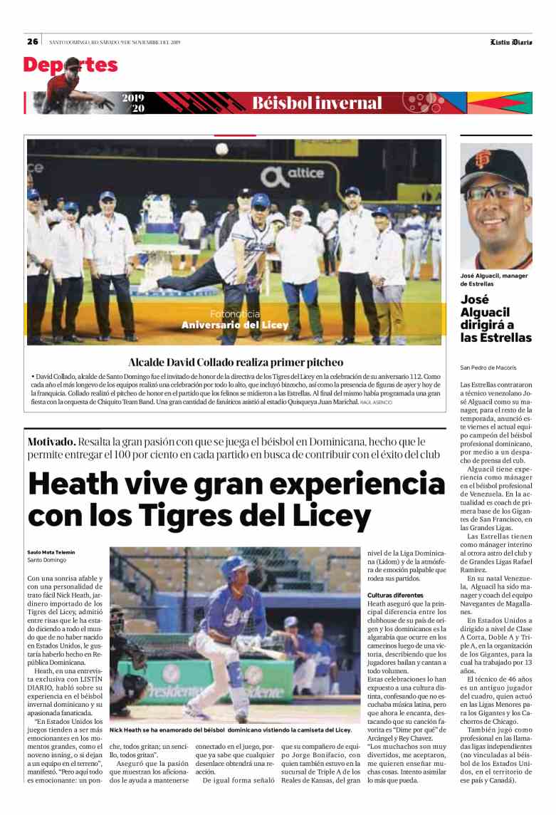 Heath, en una entrevista exclusiva con LISTÍN DIARIO, habló sobre su experiencia en el béisbol invernal dominicano y su apasionada fanaticada.