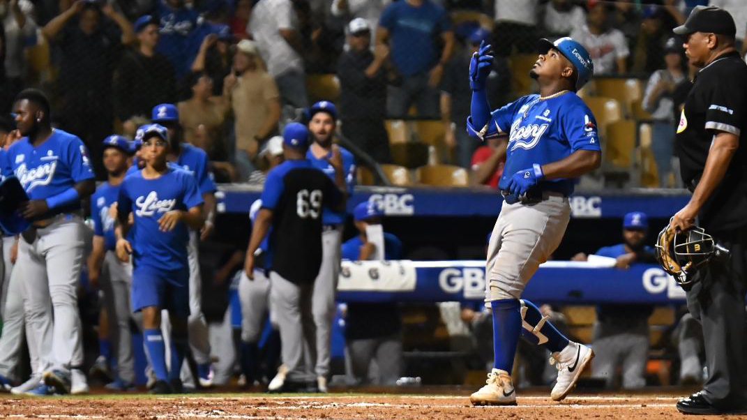 Su cuadrangular de este martes se convirtió en el primer vuelacercas de Leyba vistiendo el uniforme de los azules y el noveno de su carrera en LIDOM.