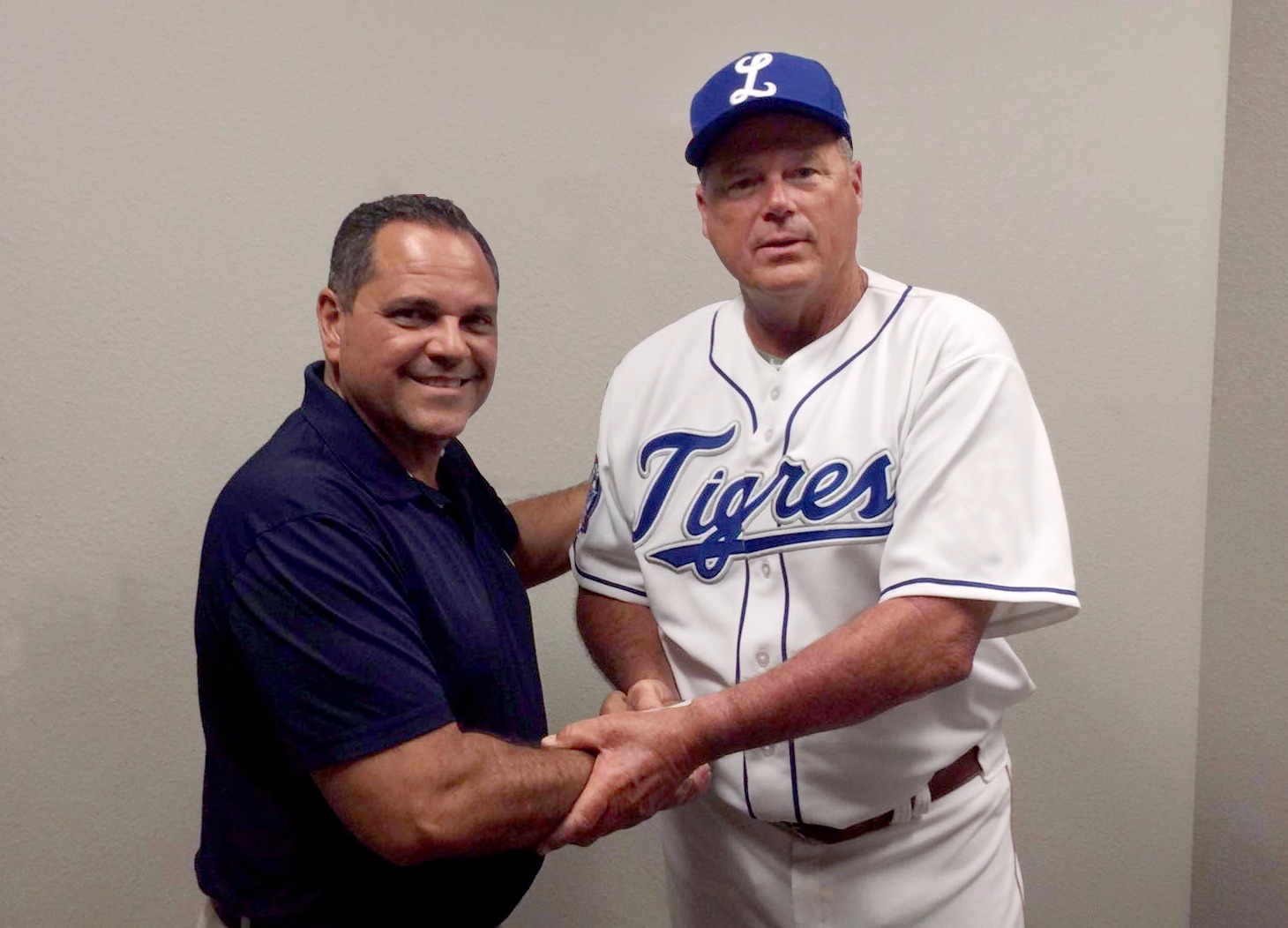 Junior Noboa con Pat Kelly, luego de concretar la firma para dirigir al Licey.