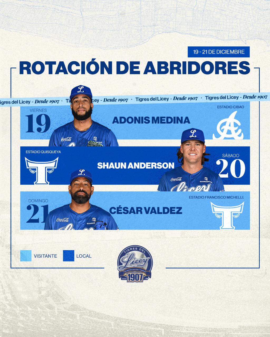 SANTO DOMINGO (Licey.com).- Los Tigres del Licey anunciaron su rotación abridora para los próximos tres partidos del torneo de béisbol otoño-invernal 2025-26.