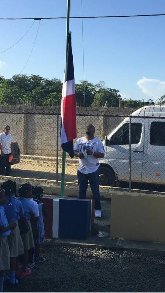 En acto de apertura el jugador Juan Francisco izó la bandera Nacional regaló cuadernos e incentivó a niños y jóvenes a participar en cada una de los eventos patrióticos en sus centros de estudios y comunidades.