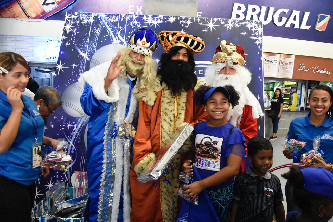 Animados por personajes que simbolizaron a los mitológicos “Tres Reyes Magos”, se hizo entrega de juguetes a los primeros cien niños acompañados por adultos, que consistió en camiones, carros, juegos de cocina, muñecas varias, aros, pelotas, robots, bates, coches y barbies, así como bolsitas con variedades de dulces.