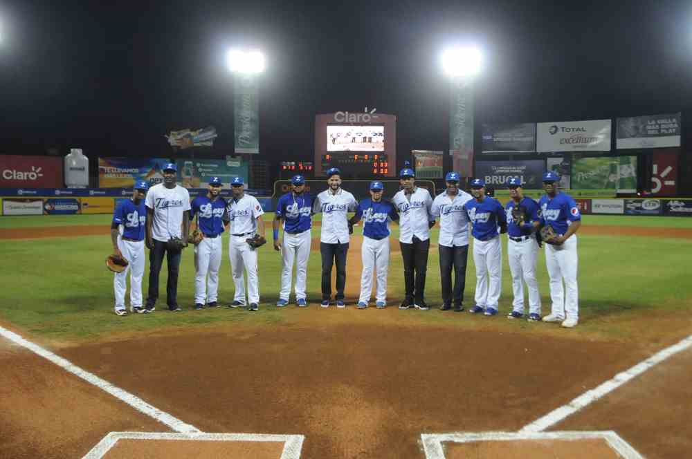 Los seis, al mismo tiempo, realizaron un lanzamiento de honor para culminar el acto y dar paso al partido de la noche, ganado por el Licey 2-1 a las Águilas Cibaeñas en 11 episodios, para cerrar la serie particular 8-2 y añadir un capítulo más a su historia de gloria y tradición.