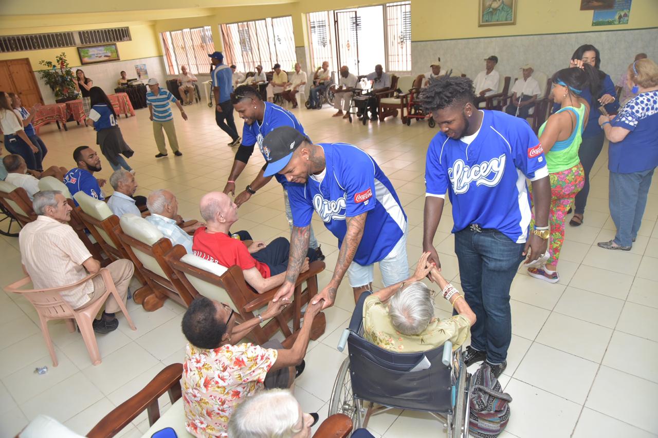 SANTO DOMINGO (Licey.com),-El Club Atlético Licey inicio su “Temporada de Abrazos”, con una visita al Hogar para Ancianos San Francisco de Asís, en el kilómetro 11 de la Carretera Sánchez, en la que varios de los jugadores de los Tigres brindaron momentos de felicidad y abrazos, en una velada de juegos, bailes y risas con personas de la tercera edad.