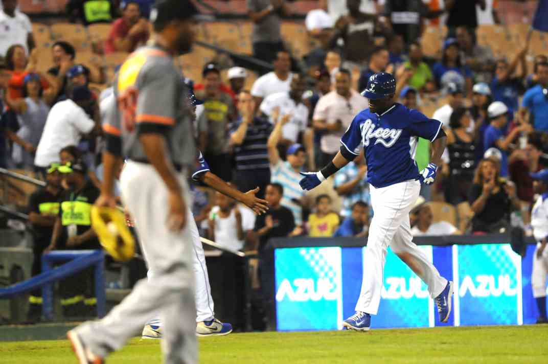 El Licey fabricó su primera carrera en el episodio inicial, cuando un batazo de Diory Hernández fue pifiado por el inicialista Wilson Betemit y eso se tradujo en una anotación de Rymer Liriano. Con el juego 1-0, Parmelee sacó la bola del parque en los canales, entre el jardín izquierdo y el central, y aportó la ofensiva necesaria para que los azules ganaran su tercer partido en forma consecutiva.