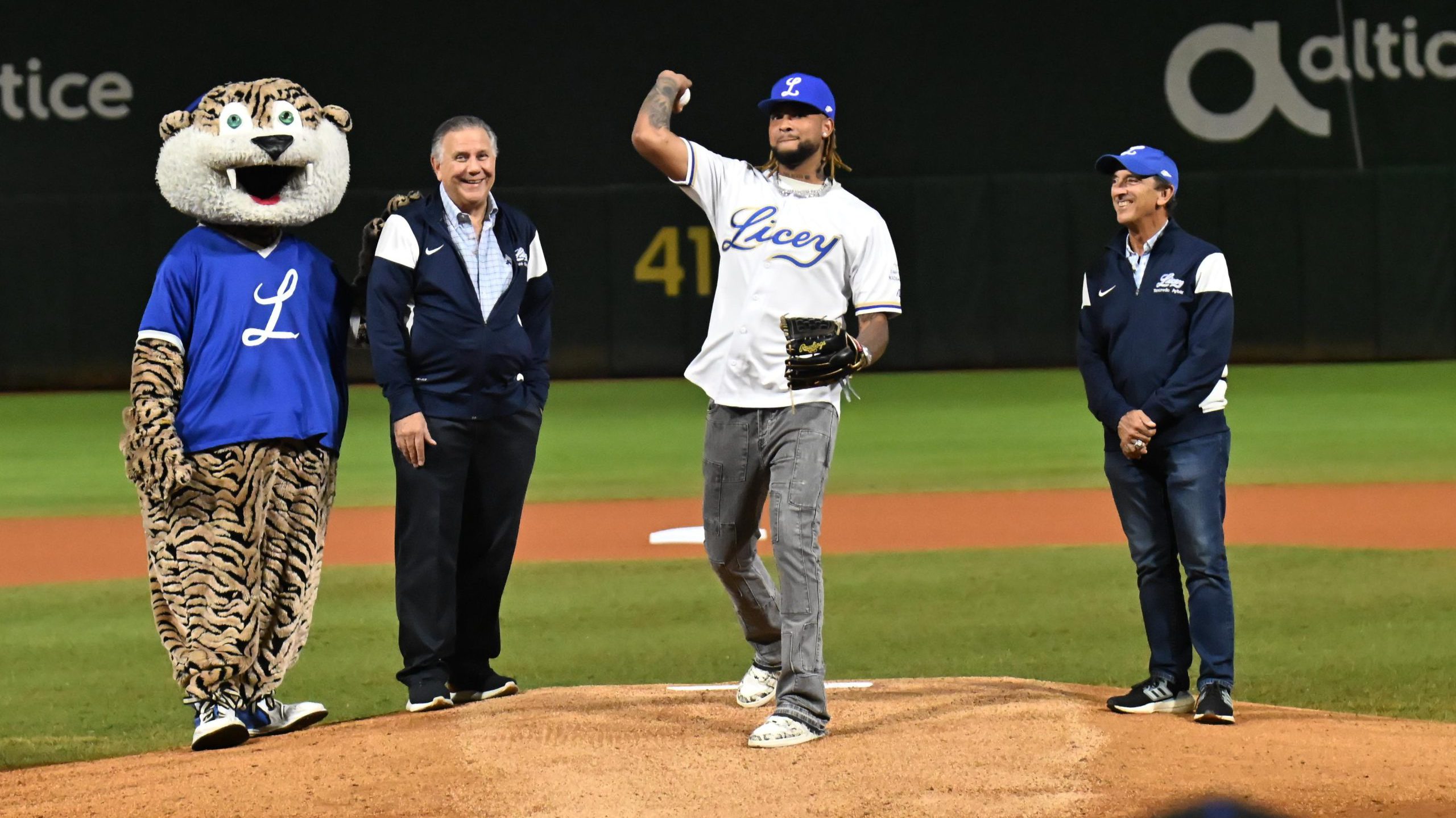 Gil fue acompañado por Tancredo Aybar y Federico González Santoni, miembros de la Directiva de los Tigres del Licey, Cynthia Morillo, directora de relaciones públicas y El Tiguerito, mascota del equipo, mientras que Anderson Hernández, quien finge como coach de infield, que fue el receptor de honor.