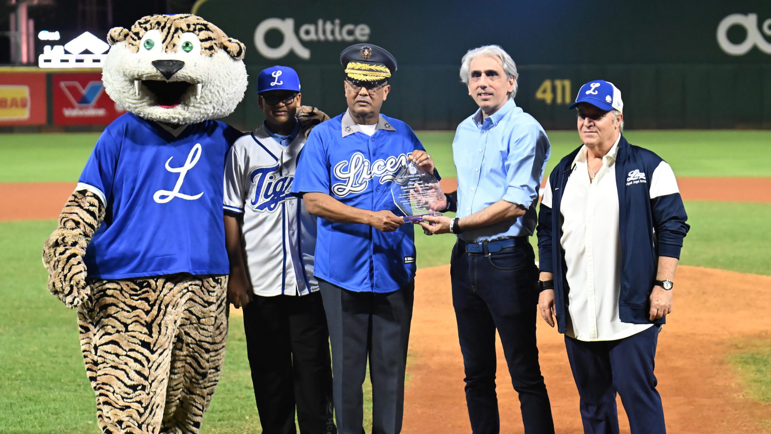 SANTO DOMINGO (Licey.com).- El Mayor General Ramón Antonio Guzmán Peralta, Director General de la Policía Nacional, fue el encargado de realizar el lanzamiento ceremonial de la primera bola y recibió una placa de reconocimiento, previo al partido de este viernes entre Estrellas Orientales y Tigres del Licey, celebrado en el Estadio Quisqueya Juan Marichal.