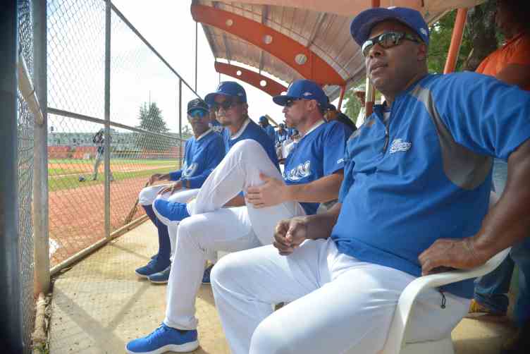 SANTO DOMINGO.-El cuerpo técnico del Licey, compuesto por desde el fondo; Fleming Báez, Joel Nobia, Robbie Hammock y José Offerman. (Isaac Calvo/Licey.com)