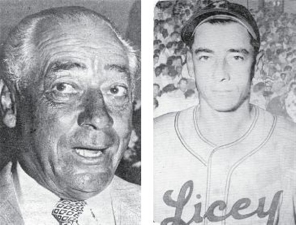 En la cueva felina se destacan, de izquierda a derecha: Manolete Cáceres, Miguel Ángel Vargas, y los boricuas Pantalones Santiago (visitante) y Luis Rodríguez Olmo. Esta gráfica fue tomada en la temporada de 1952, cuando los liceístas discutían el primer lugar con las Águilas Cibaeñas