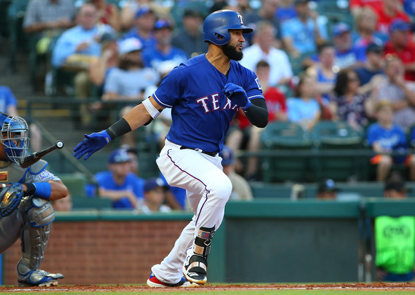 Nomar Mazara #30 of the Texas Rangers hits in the first inning against the Kansas City Royals at Globe Life Park in Arlington on May 24, 2018 in Arlington, Texas. (May 23, 2018 – Source: Rick Yeatts/Getty Images North America)
