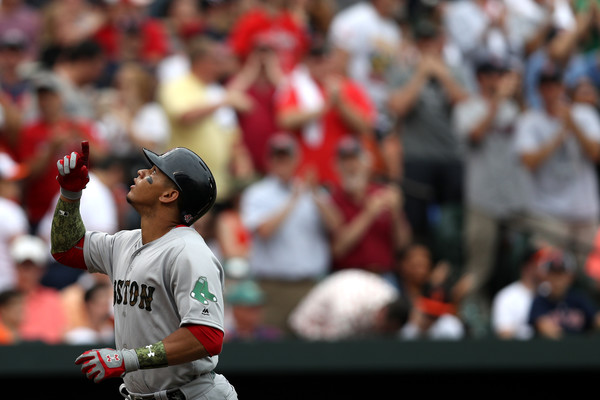 Marco Hernandez #41 of the Boston Red Sox celebrates after hitting a three run home run during the eighth inning at Oriole Park at Camden Yards on May 30, 2016 in Baltimore, Maryland.