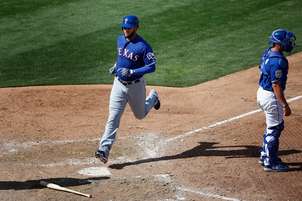 Nomar Mazara #30 of the Texas Rangers scores a run against the Kansas City Royals during the sixth inning of the cactus leauge spring training game at Surprise Stadium on March 2, 2016 in Surprise, Arizona.(March 1, 2016 – Source: Christian Petersen/Getty Images North America)