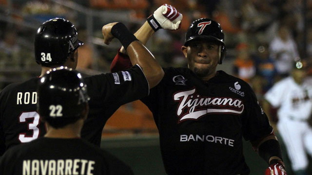 En el 2014, Miguel Olivo bateó para .309 con 8 cuadrangulares y 21 carreras empujadas en 35 juegos con los Toros de Tijuana.