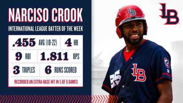 LOUISVILLE, Kentucky (Milb.com),-El jardinero de los Murciélagos de Louisville, Narciso Crook, fue nombrado el Bateador de la Semana de la Liga Internacional del 15 al 21 de julio.