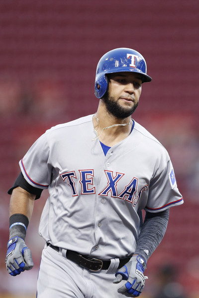 Nomar Mazara #30 of the Texas Rangers rounds the bases after hitting a three-run home run in the second inning against the Cincinnati Reds at Great American Ball Park on August 24, 2016 in Cincinnati, Ohio.