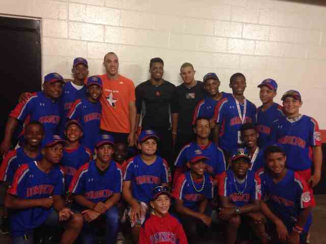 El antesalista Manny Machado y el utility Jimmy Paredes se unieron a Ubaldo para recibir al equipo al final del encuentro y compartieron con los ilusionados niños, todos menores de 13 años.