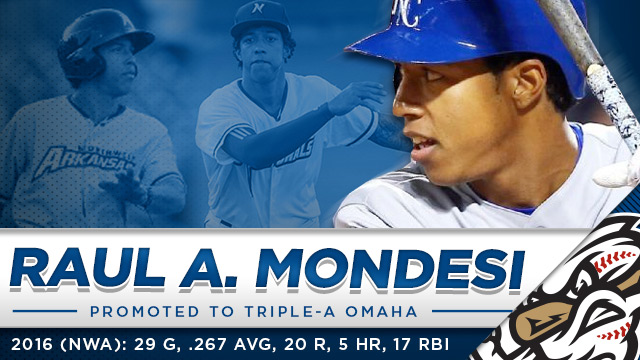 En Omaha, el torpedero Raúl Mondesí Jr disparó su primer doble en la derrota de los Storm Chasers (Kansas City) de 9-12 en diez entradas ante Memphis Redbirds (San Luis) con una asistencia de 4,191 fanáticos en Werner Park.