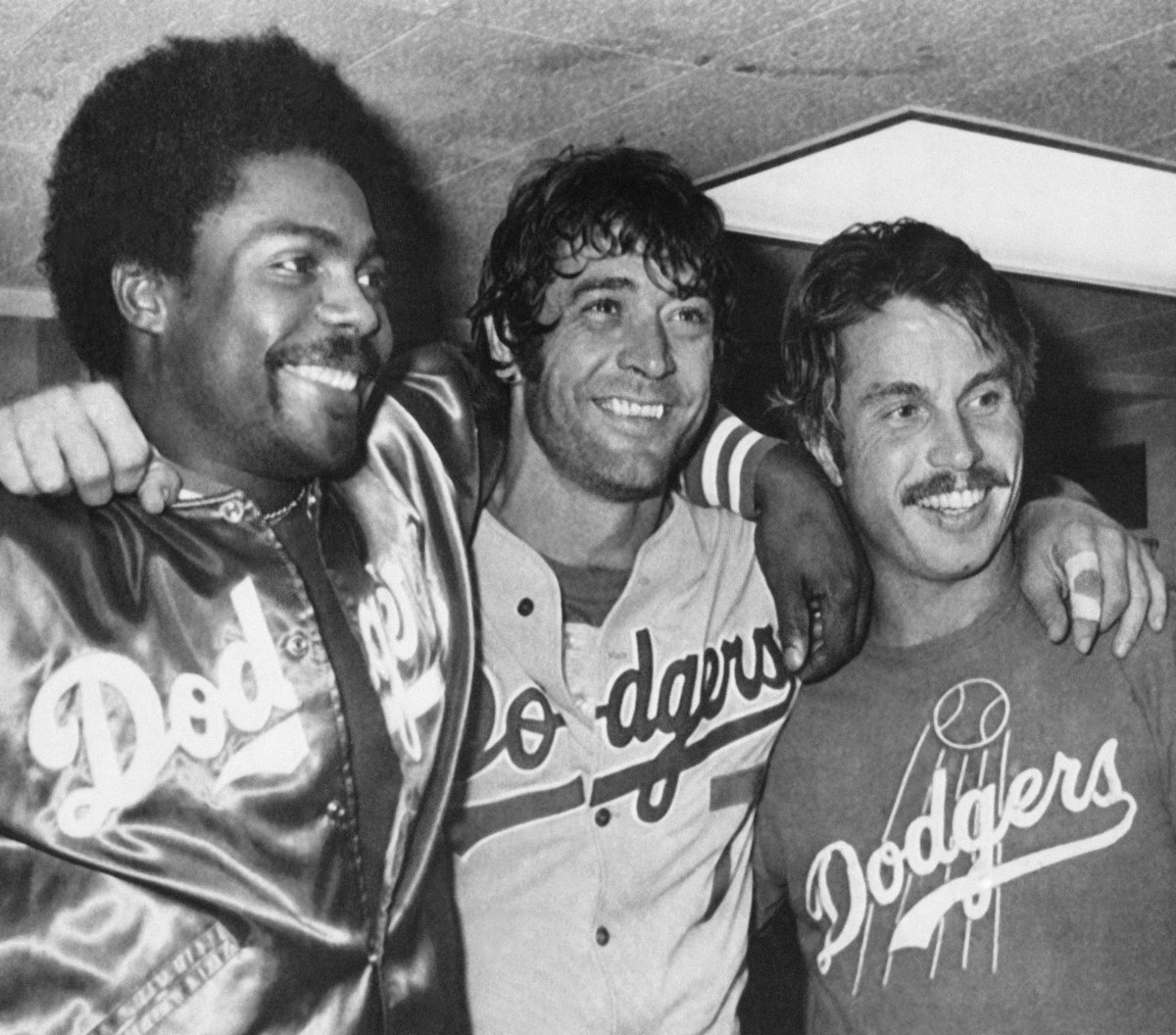 This Pedro Guerrero (left) shared the 1981 World Series Most Valuable Player Award with Dodgers teammates Steve Yeager (center) and Ron Cey.