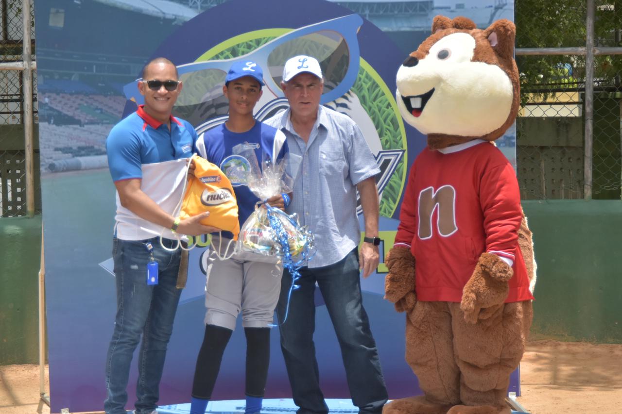 Cabrera Ramírez fue el vencedor en las pruebas de fildeo en el outfield y de velocidad en la división 13-15 años, en la que Francisco Alexander Dolores venció en fildeo en cuadro interior y Joel Alcántara Rodríguez conquistó derby de jonrones. Ellos se llevaron regalos de los patrocinadores, así como cada uno de los premiados, que entregaron Pichardo Peña y su esposa Joselyn Baba de Pichardo.