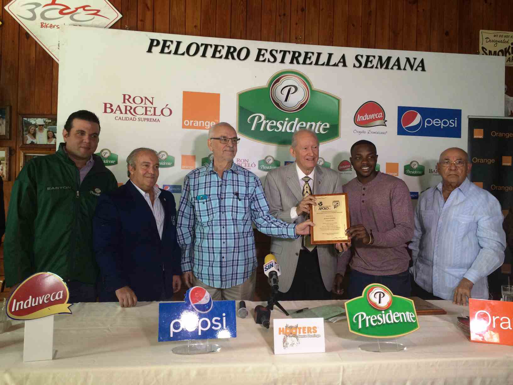 El jardinero importado de los Tigres del Licey, quien bateó .357 con jonrón, triple, cuatro remolques y tres anotadas en los tres partidos de la primera semana, recibió placa y premios del escrutinio que preside Andrés Vanderhorst, y que avala como oficial la Liga Dominicana de Béisbol.
