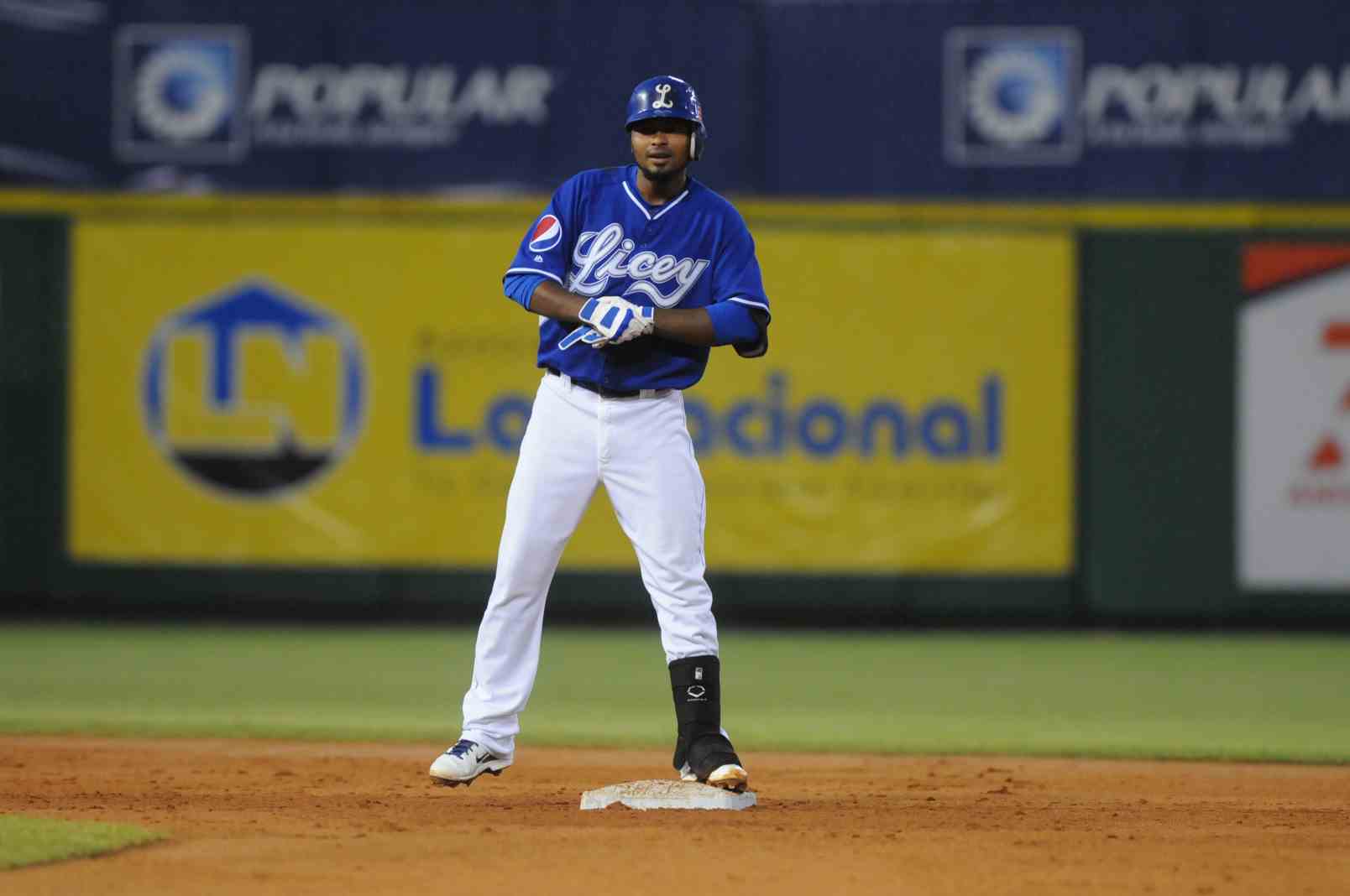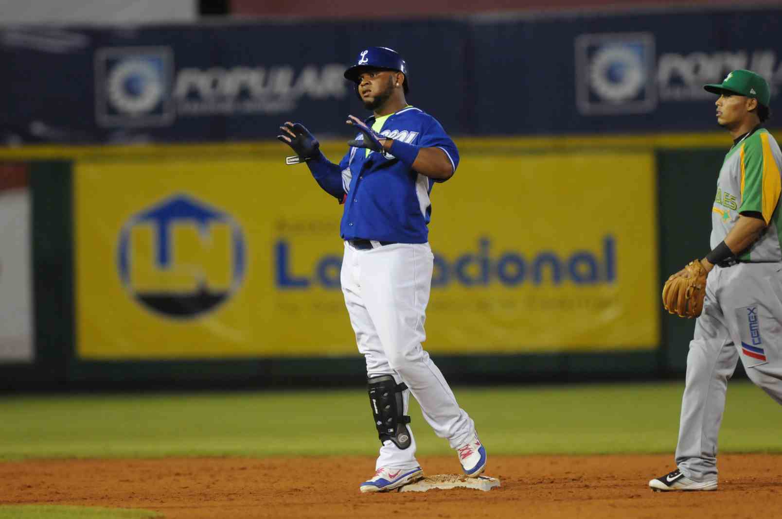 Juan Francisco se detiene en la segunda base luego de pegar batazo en la pared central de los 411 (Isaac Calvo/Licey.com)