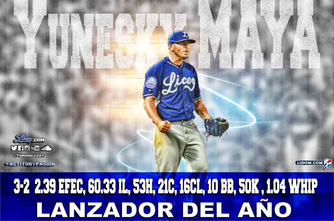 El diestro cubano Maya se alzó con el galardón de Lanzador del Año, al tomársele en cuenta sus lideratos líder en ponches propinados (50) y entradas lanzadas (60.1) en 10 aperturas, con 10 bases por bolas.