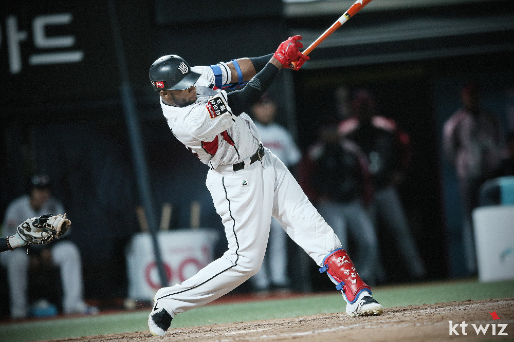 Rojas Jr disparó su jonrón 33 en la primera entrada remolcador de dos carreras ante Lee Jae-hak para igualar en el segundo lugar con Kim Jae-hwan, de los Osos de Doosan, ambos detrás del estadounidense Jamie Romak, de SK Wyverns, quien es el líder con 37.