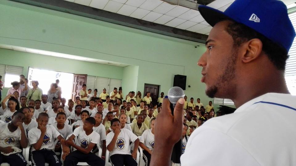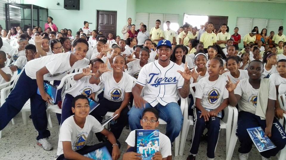 SANTO DOMINGO (Licey.com).- El jardinero Rymer Liriano, abrió por la temporada invernal 2014-15 la promoción “Estudiar es Primero”, programa que desarrolla el Club Atlético Licey con la comunidad, al visitar la escuela Nuestra Señora Del Carmen, del barrio Simón Bolivar.