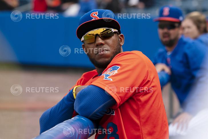 Apr 7, 2019; Syracuse, NY, USA; Syracuse Mets outfielder Rymer Liriano (28) at the dugout railing during the sixth inning against the Pawtucket Red Sox at NBT Bank Stadium. Mandatory Credit: Gregory J. Fisher-USA TODAY Sports