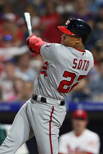 Juan Soto #22 of the Washington Nationals hits a three-run home run during the ninth inning of a game against the Philadelphia Phillies at Citizens Bank Park on June 29, 2018 in Philadelphia, Pennsylvania.(June 28, 2018 – Source: Rich Schultz/Getty Images North America)