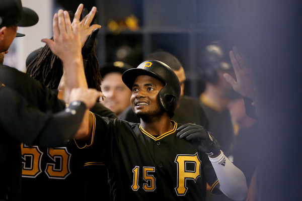 Pablo Reyes #15 of the Pittsburgh Pirates celebrates with teammates after hitting a home run in the fifth inning against the Milwaukee Brewers at Miller Park on September 14, 2018 in Milwaukee, Wisconsin. (Sept. 13, 2018 – Source: Dylan Buell/Getty Images North America)