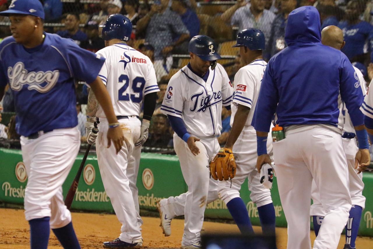 Tigres del Licey (12-14) 3, Leones del Escogido (12-14) 1
