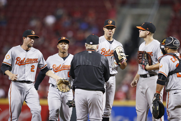 Ubaldo Jimenez #31 of the Baltimore Orioles waits to be relieved in the eighth inning of the game against the Cincinnati Reds at Great American Ball Park on April 19, 2017 in Cincinnati, Ohio. The Orioles defeated the Reds 2-0.(April 18, 2017 – Source: Joe Robbins/Getty Images North America)