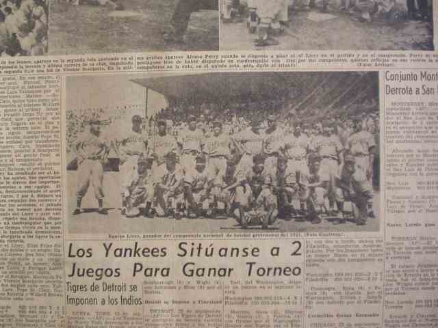 Líder absoluto; Alonzo Perry. El Gigante de Ébano de los Tigres. Su jonrón escribió la página más emocionante de nuestro béisbol profesional este año. Sólo conectó un hit. Su cuadrangular para dar el campeonato a su club y aumentar el record que estableció de batear de hit en treintitrés juegos consecutivos.