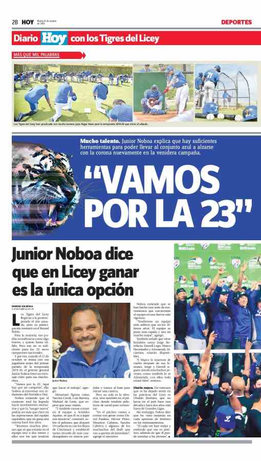 “VAMOS POR LA 23” Junior Noboa dice que en Licey ganar es la única opción